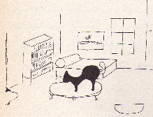 أَمَّا فِي النَّهَارِ فَلاَ يَخْرُجُ إِلاَّ حِينَ يَغِيبُ القِطُّ عَنِ الغُرْفَةِ .